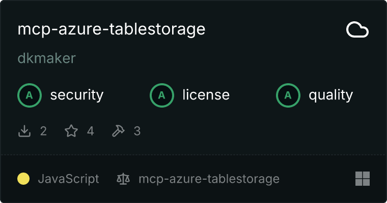 A TypeScript-based MCP server that enables interaction with Azure Table Storage directly through Cline. This tool allows you to query and manage data in Azure Storage Tables.