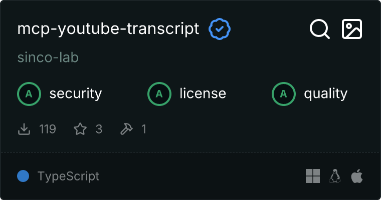 npx -y @smithery/cli install @sinco-lab/mcp-youtube-transcript --client claude